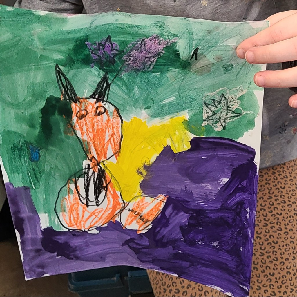 As always we continued on with our directed drawing of the week. F is for fox. It is so remarkable how their individuality shines in these activities. We had baby foxes and purple foxes and everything in between!