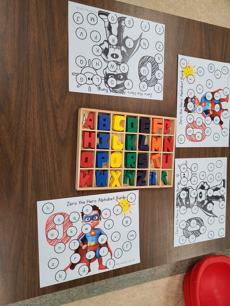 For a twist, we incorporated the Zero the Hero alphabet bump game, using wooden alphabet letters to match to the letters—a delightful change that kept our students engaged and eager to learn.